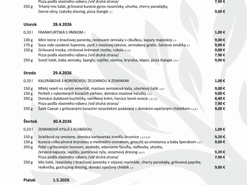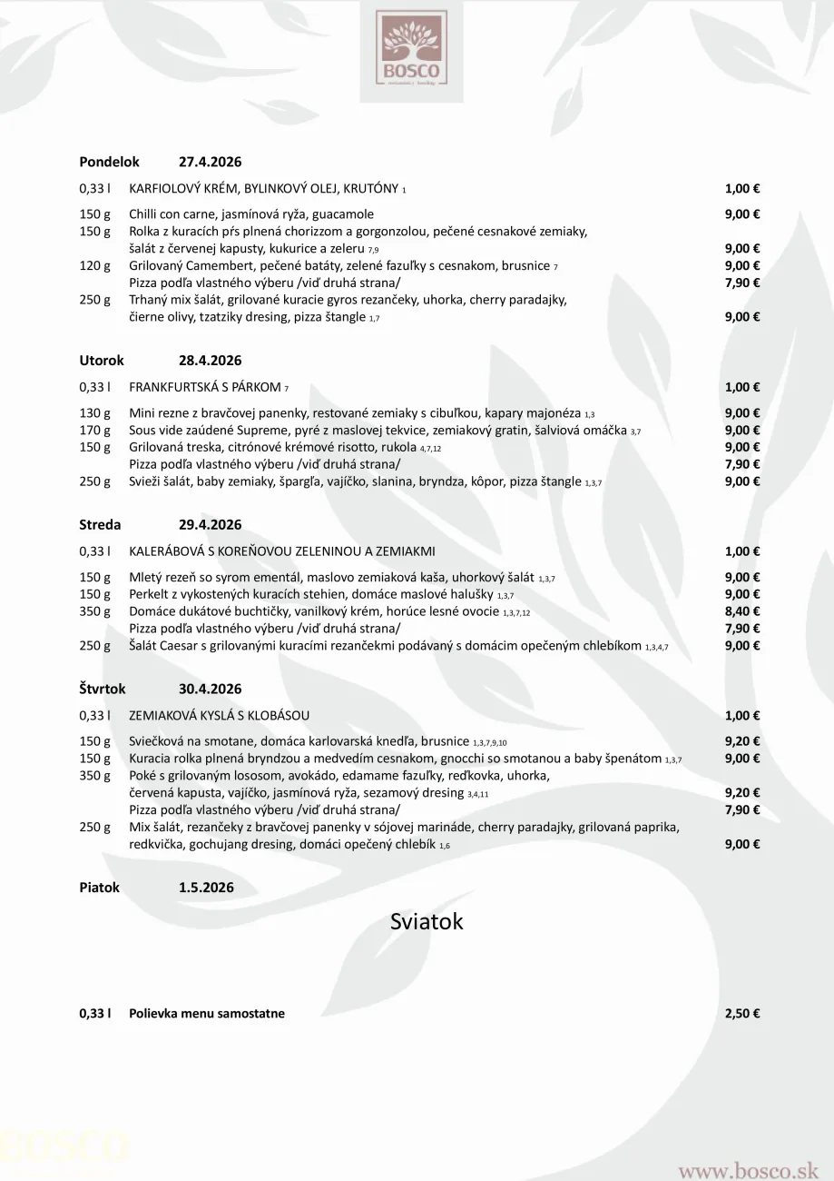 Denné menu Trenčín – Bosco